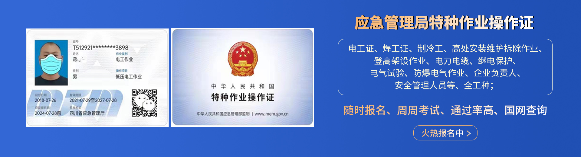 電工證,焊工證,登高架設(shè)證,高處安裝維護拆除證,電力電纜證,繼電保護證,電氣實驗證,防爆電器作業(yè)證,制冷工證,主要負責人證,安全管理人員證
